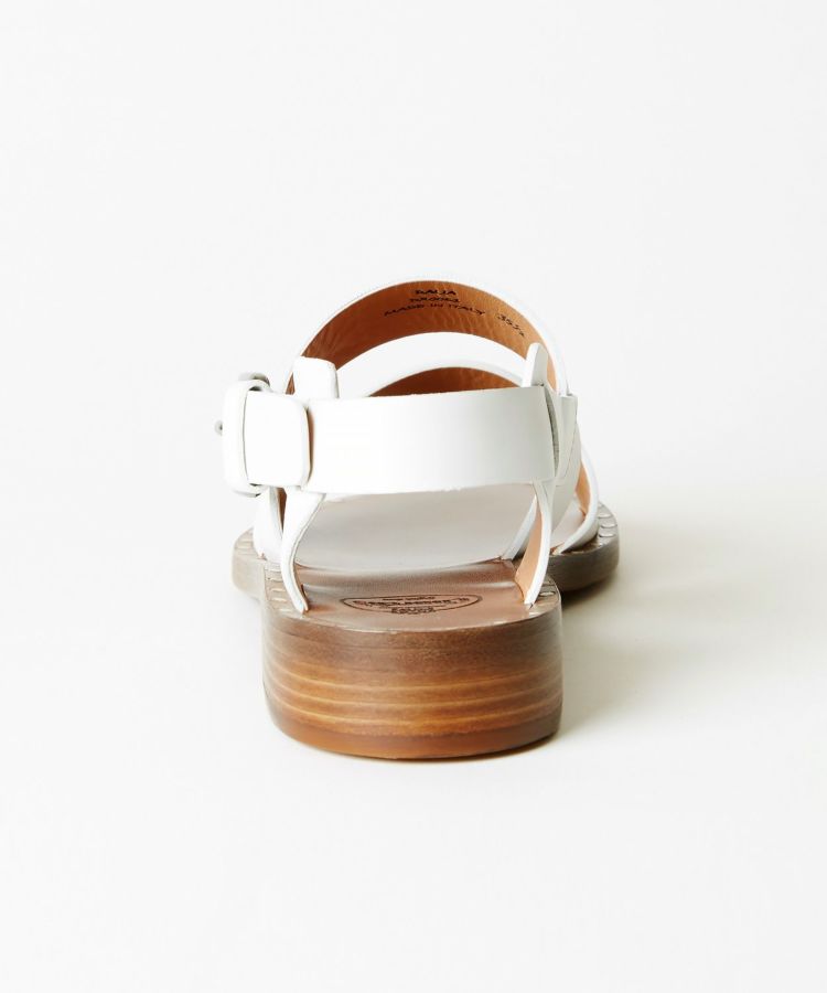フロント2か所のワイドストラップと、バックストラップによりホールド感のある履き心地。また重厚感のあるルックスながらトゥの開きが程よい抜け感を演出してくれます。