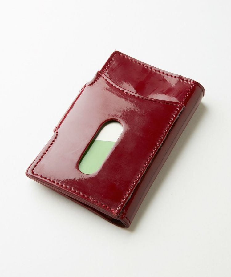 光沢感が特徴的なパテント(エナメル)レザーのカードホルダー。