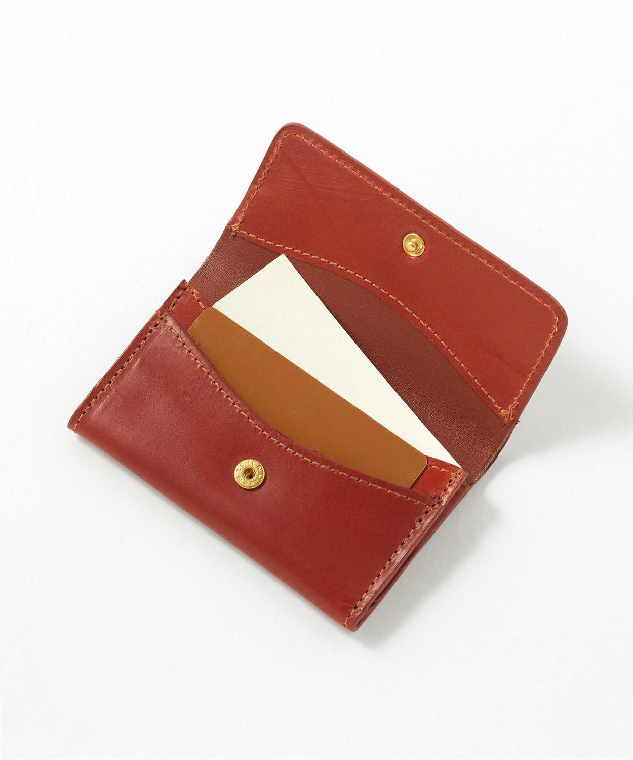 GLENROYALと刻まれた、ゴールドのスナップボタンがアクセントに。ラギッドになりがちなレザープロダクトに優美な印象をプラスしてくれます。また、しっかりとホールドできるので、名刺が落ちる心配もなく安心して使用することができます。