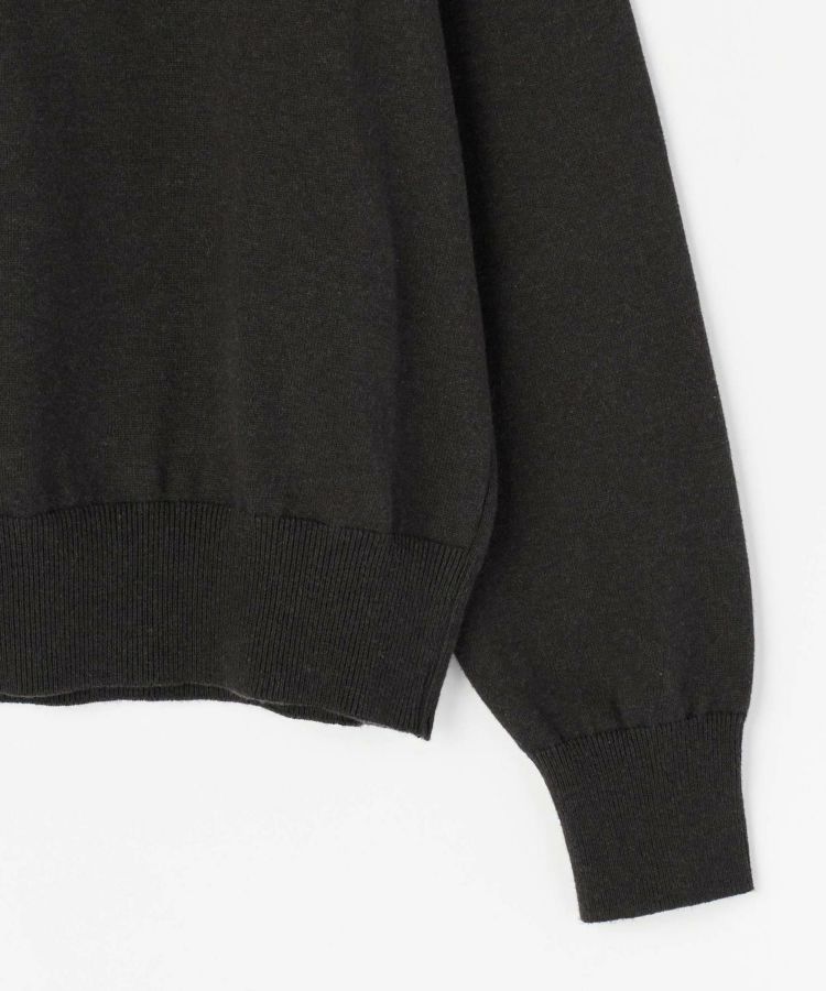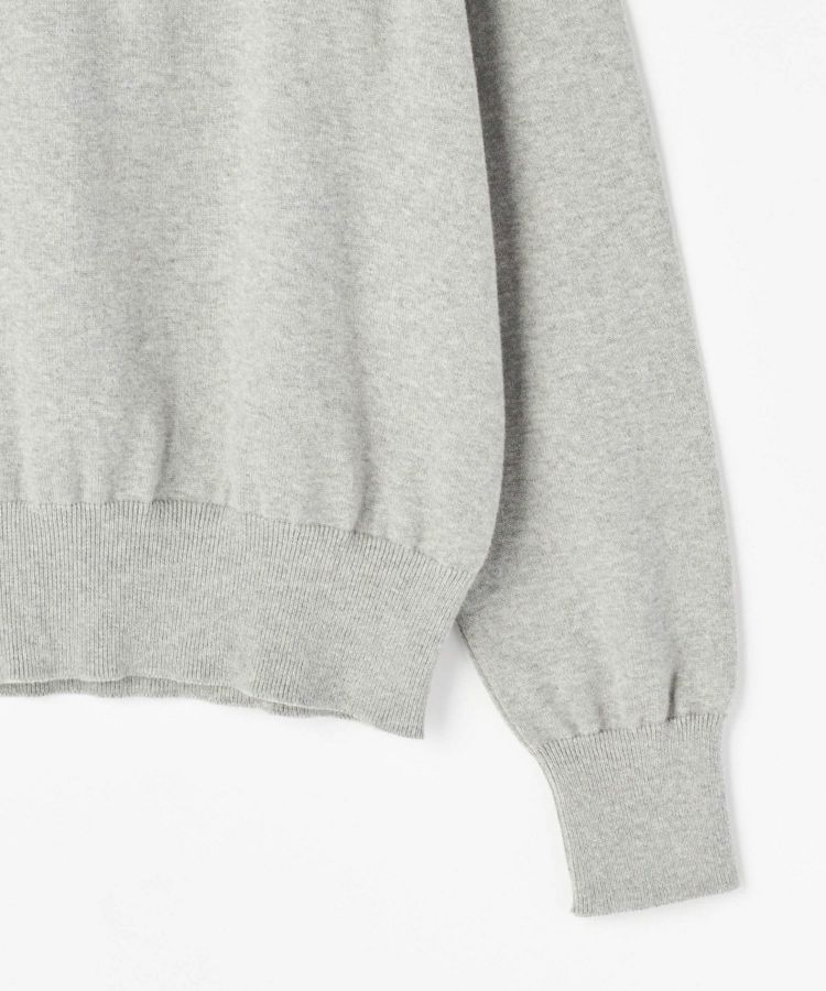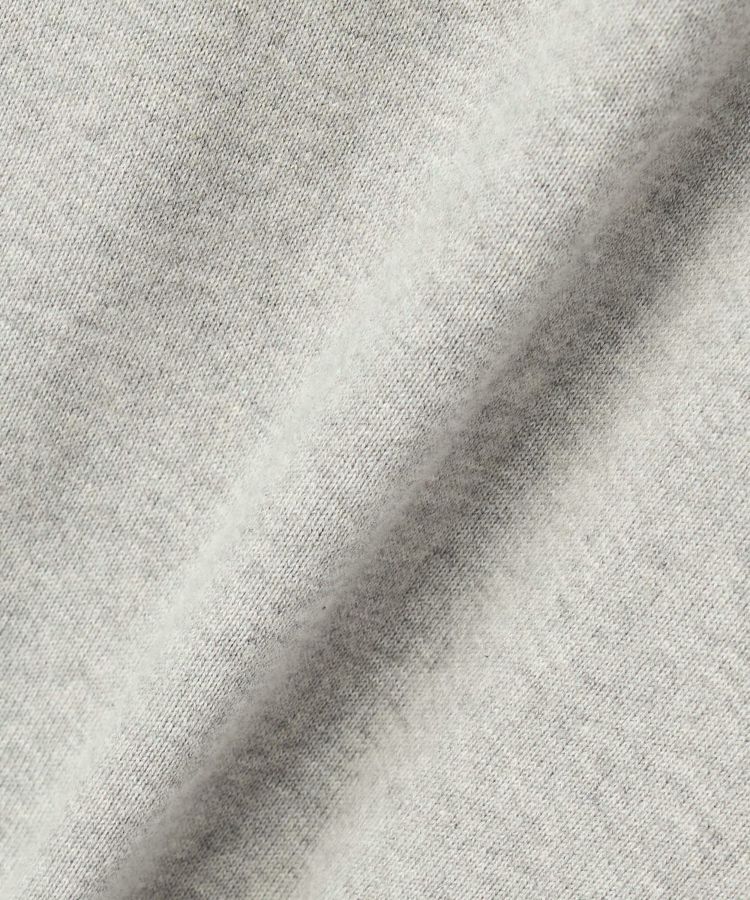 首元サイドのガゼットはフィッシャーマンセーターのディテールを元にデザイン。スウェット風の仕立てで着心地が良く、起毛加工を取り入れた素材は肌触りも抜群です。少し短めの着丈は足長効果も。裾と袖口のリブは広めに作られているので、ブラウジングしてバランスよくコーディネートが可能です。