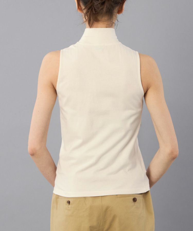 上質で柔らかなコットン素材を使用したノースリーブハイネックTシャツ。