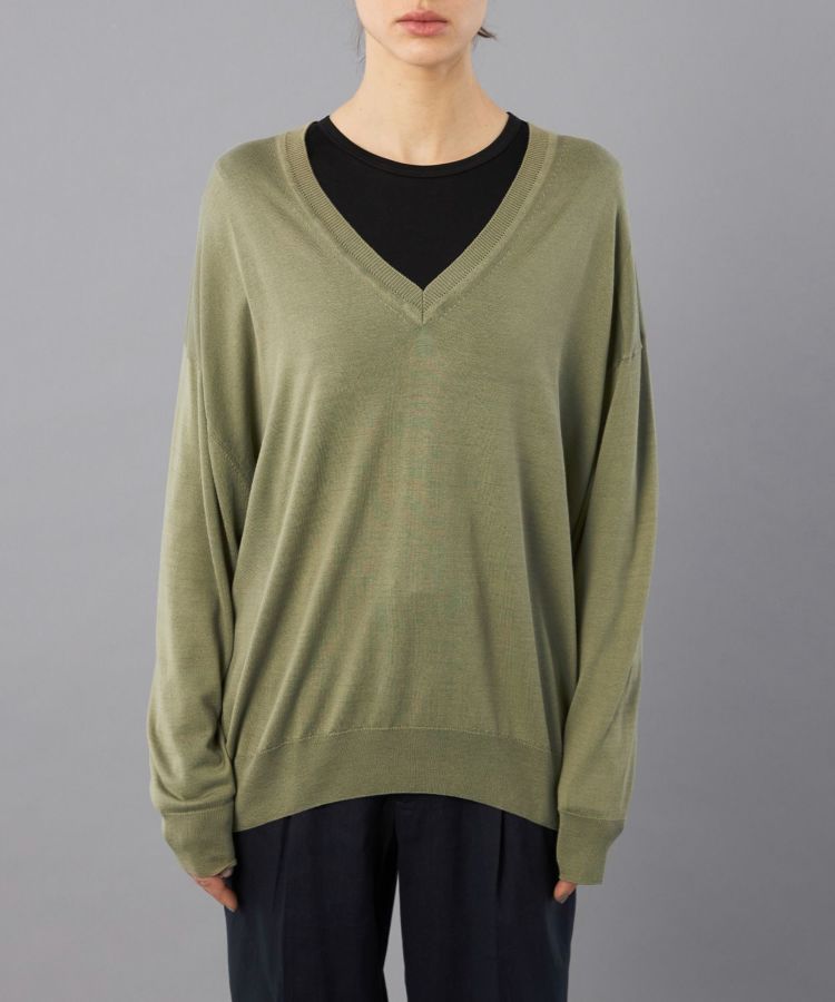 美しく滑らかなイタリア産シルクを存分に活かしたVネックニット。