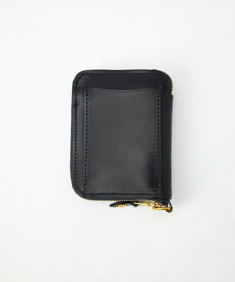 クレジットカードほどのサイズ感で、財布を開くと内側にはカード収納やマチ付きのコインケース、さらには仕切り付きの札入れがあるため、見た目以上に充実した収納力を備えています。背面外側にもカードポケットがあることで使用頻度が高いICカードなどを収納でき、財布を開かなくてもカードの出し入れが可能です。ウォレットコードやタッセル、キーホルダーなどを付けることができるDリングを搭載しているので、独自のアレンジもお勧めです。