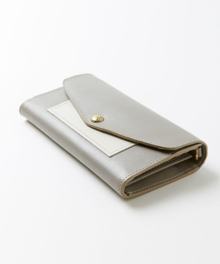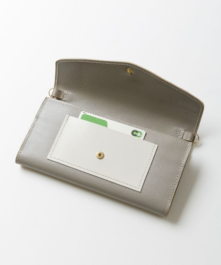 女性にうれしい実用性と機能性を取り入れたショルダー付きフラップ長財布。