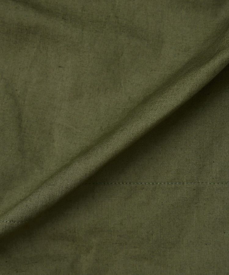 生地はリネンコットンの混紡糸を使用。ドライタッチでサラッとした肌触りが心地よい生地感です。薄手の素材を使い軽量化させたことで、ロングタームで着用可能なアイテムに仕上がっています。