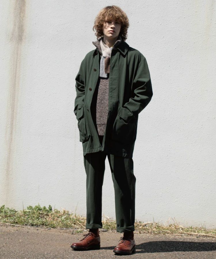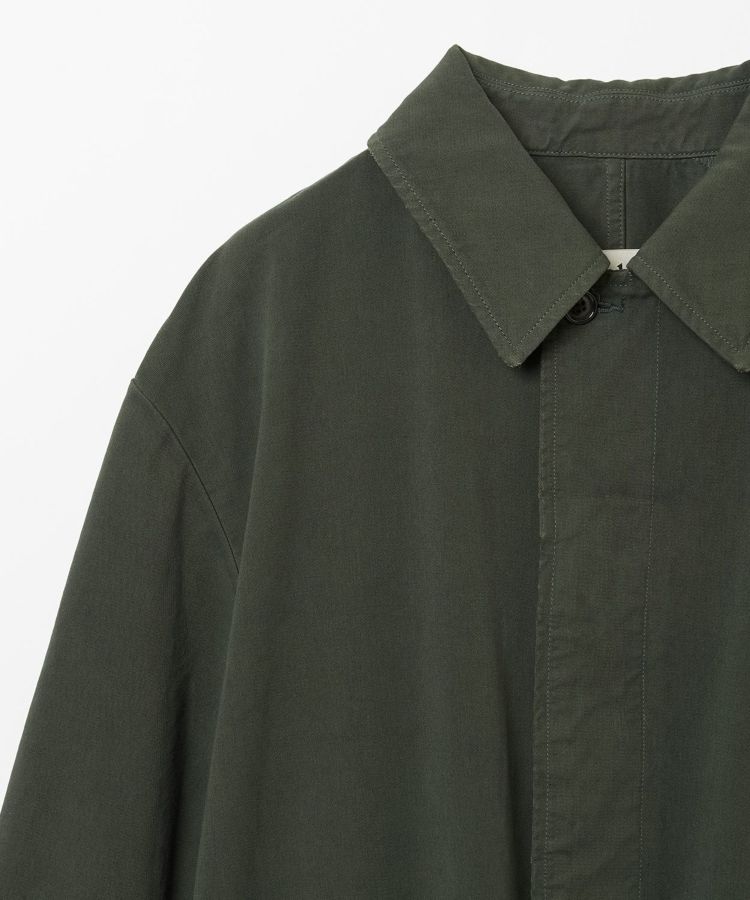 1960年代イギリスのマウンテンコートを現代的なアプローチでモディファイ。生地は60番双糸に追撚をかけて高密度で織り上げたドライタッチな生地を採用。さらに製品染めをかけることで、表面に独特なしっとりした微起毛感があり、ヴィンテージのような味わいある生地感に仕上がっています。