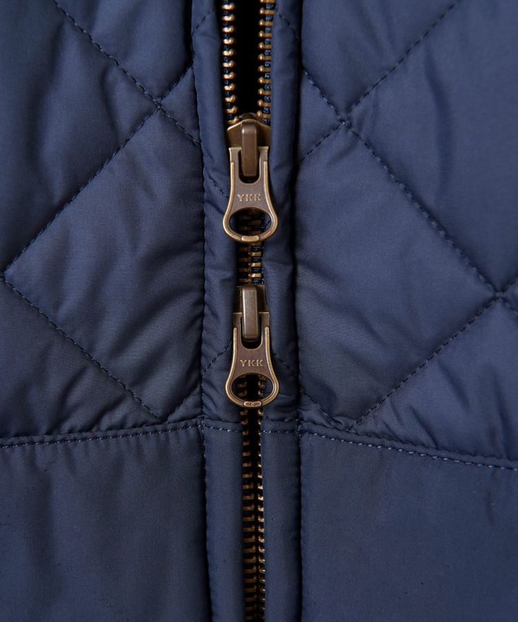 キルティング生地は両面とも撥水加工を施された生地を採用している為、多少の雨にも安心してご着用いただけます。軽量性と保温性を兼ね備え、見た目も上品な生地を厳選し仕立てています。