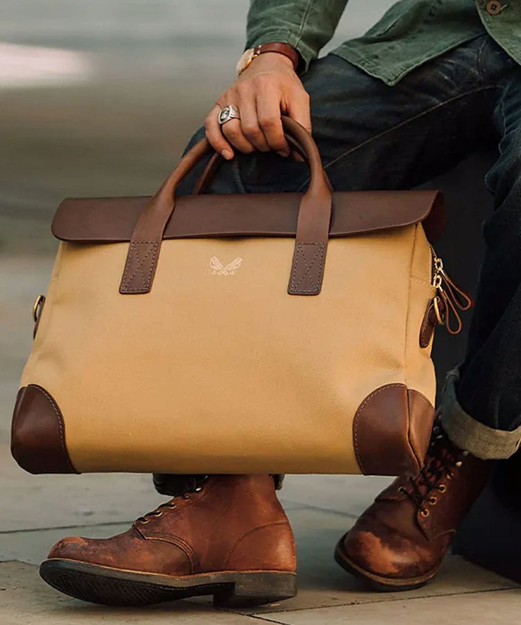 イギリスで手作業で仕立てられた軽量かつ防水性に優れたコットン100%のキャンバスに、レザーのフードとトリムを組み合わせ、スマートで控えめな印象を与えます。スリムなデザインながら、広々とした内部空間を提供。内部にはパッド入りのラップトップスリーブや、ケーブルやデバイスを整理するためのポケットを完備しています。