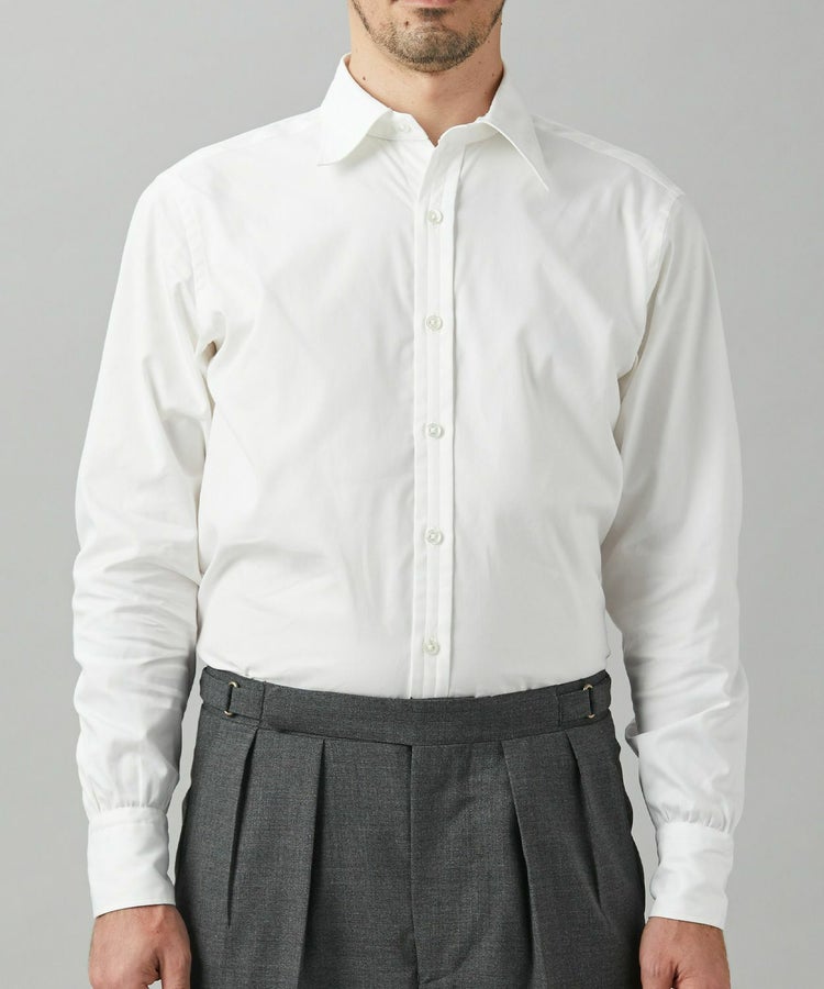・英国式ドレスシャツらしいレギュラーカラーを採用