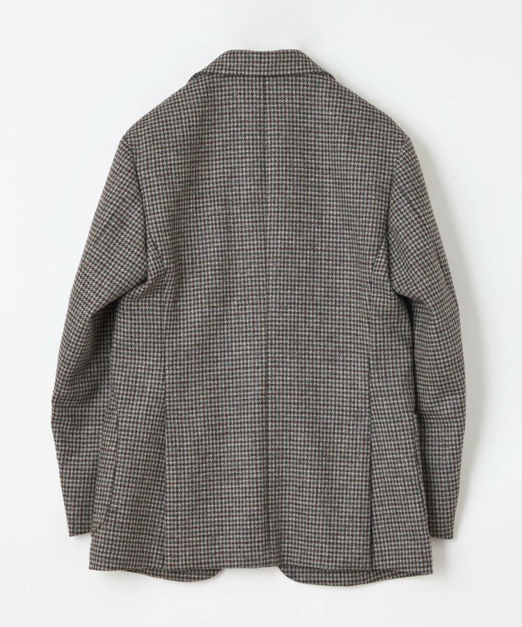一般的にツイードジャケットは野暮ったいとかクラシックすぎるというイメージが強いかもしれませんが、ツイードが持つイギリスの伝統的な良い部分は継承しつつ、現代的にアップデートもできればと思い、仕立てはアンコン仕立てでシルエットは少しリラックスシルエットにしました。ただ、素材はツイードらしい表情、ウェイトのものを選び、柄もガンクラブチェックといったクラシックな柄を選びました。クラシックさもありつつ、着心地は現代的な新感覚のツイードジャケットに仕上がりました。