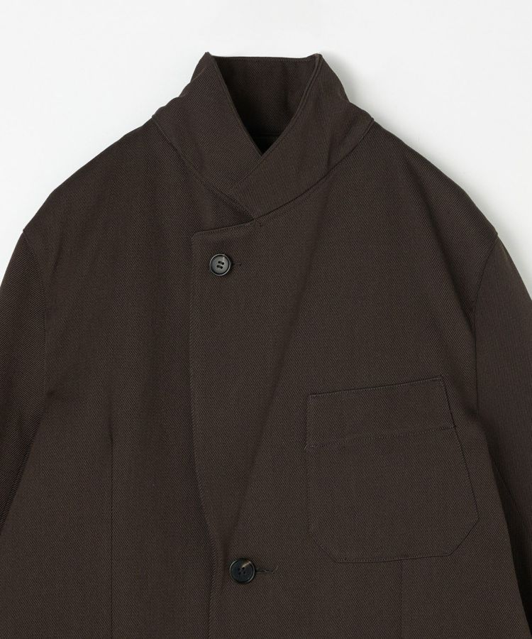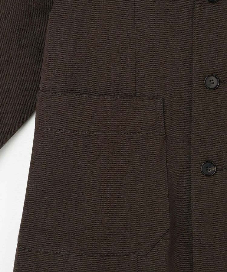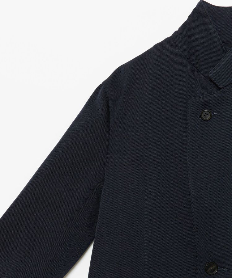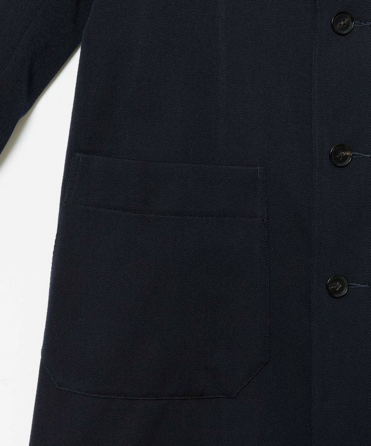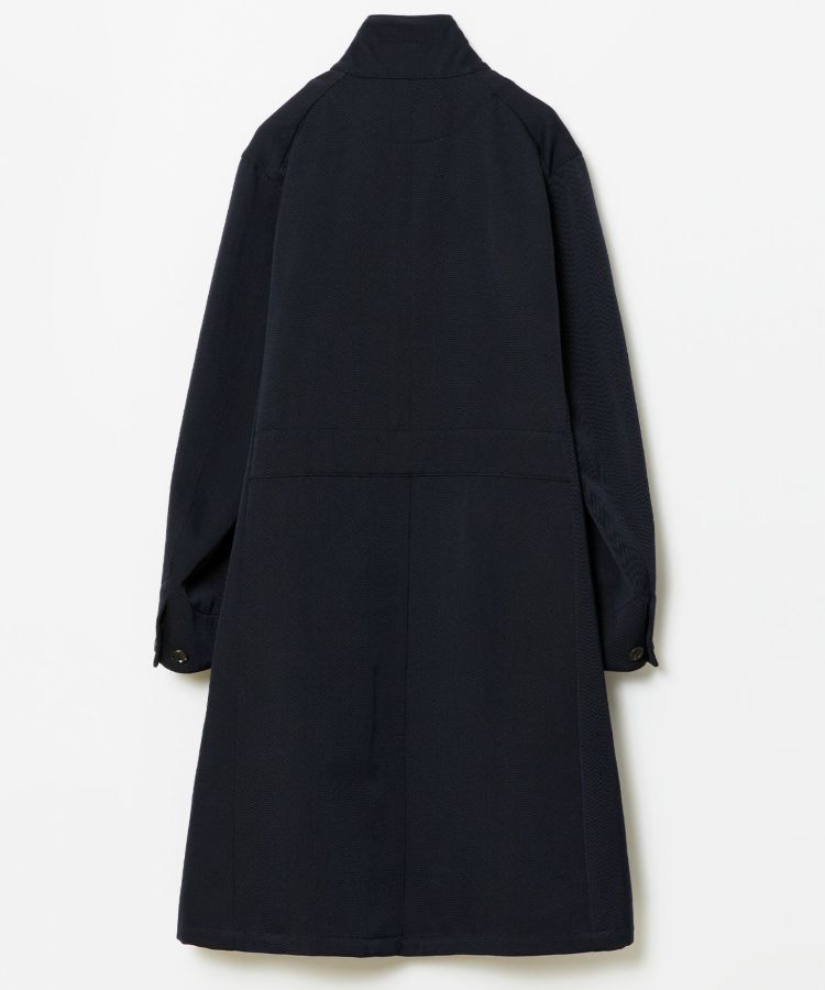 大切にしたことはドレステイストを感じられるデザイン。その為にラペル周りからVゾーンを広く立体的に、背面も肩周りをコンパクトにし、ベルトを高めにとりました。また生地にはウールとコットンを織り合わせ、ふわっとした上質な質感とワークコートらしい質感を両立。長く着込んでいく事で、生地の風合いの変化、コートが自身の体型に馴染んでいくといった過程を楽しむことができます。
