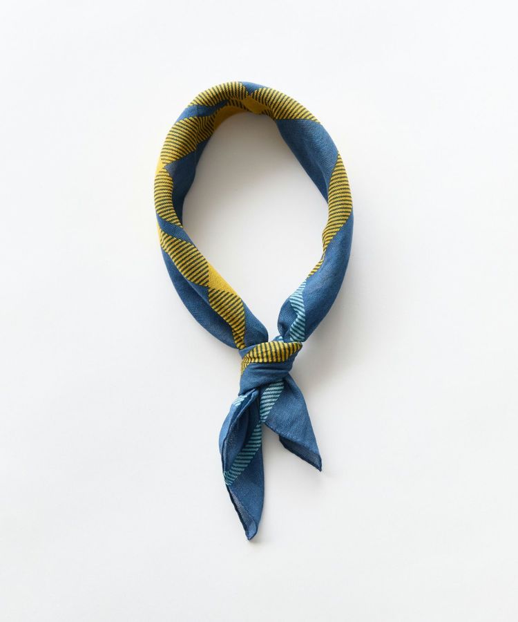 また、スタイリングの可能性を広げることができるタータンコットンチーフもセットになっています。通常のチーフより大きいサイズ感で、ネッカチーフやカジュアルアウターを着た際のチーフ使い、そして風呂敷として旅行のパッキングにも使えるようになっています。