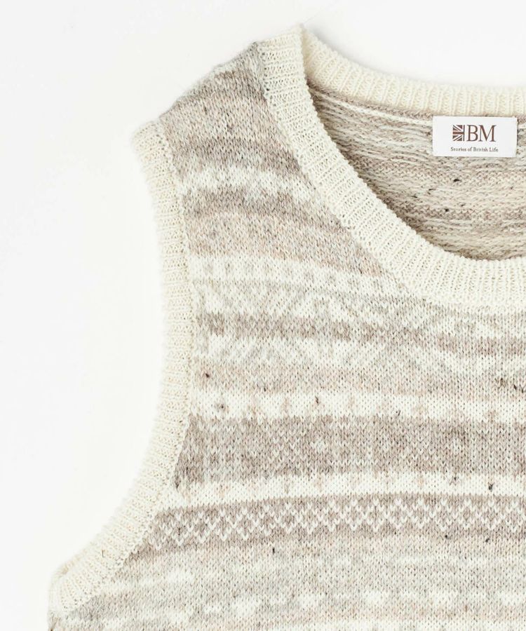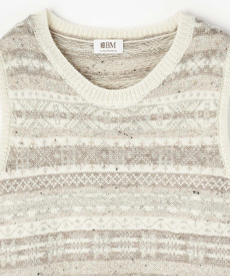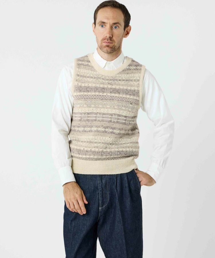 スコットランド発祥のクラシカルなパターンであるフェアアイルを取り入れた、英国らしいカントリースタイルのニットベスト。