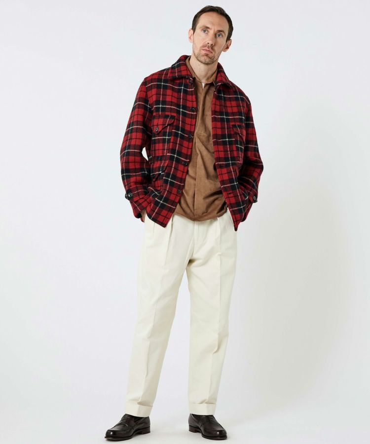 柔らかなウール素材がもたらす上質な温もりに加え、スコットランド由来のタータンチェックが彩るブリティッシュカントリーの薫りを纏いながら、街でも映える一着として、長くご愛用いただけます。