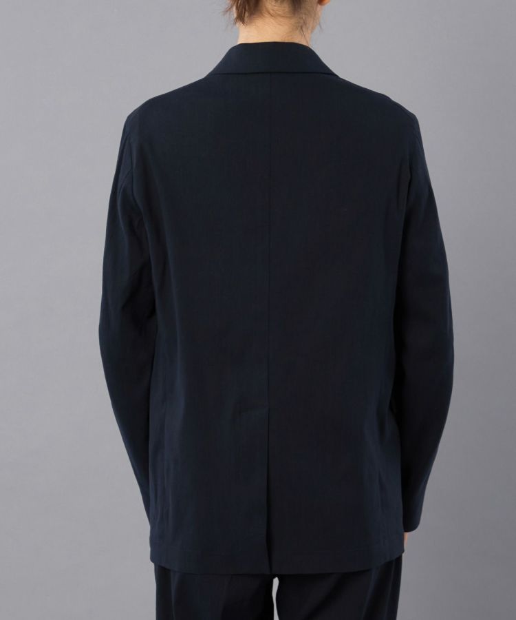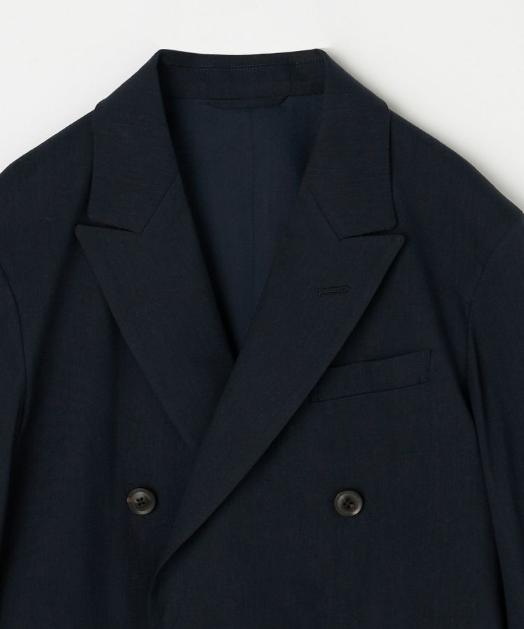 下襟が上向きに尖った「ピークドラペル」はフォーマルなディテールで、ラフな着こなしでも品を漂わせてくれます。シルエットは現代的に着こなせるよう大きくシェイプさせずに、ボクシーでメンズライクなスタイルに再構築。やや“ON”な印象を楽しみたい場合にはアイロンをかけてパンツとセットアップで着てもよし、カジュアルに着たい場合はカーディガン感覚でTシャツ、デニムのスタイルに羽織ってもよし。幅広いテイストのスタイリングに対応し、着回し力にも優れています。