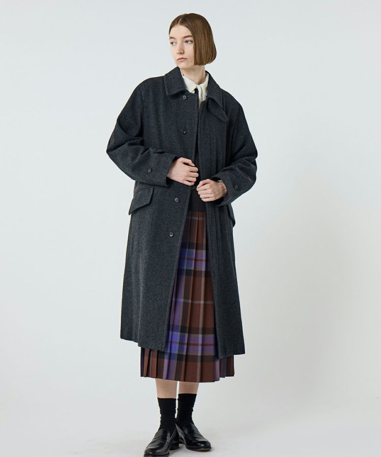 ボリューム感のあるオフィサーコートは、ストレートシルエットやセレモニーパンツのようなワイドシルエットとの相性が良く、マニッシュなコーディネートを楽しんでいただけます。