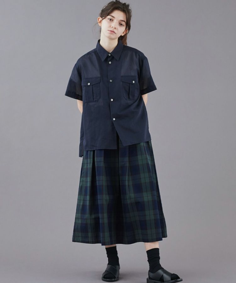 ほどよく透け感があり、薄手の生地で夏でも快適に着用いただけます。袖丈、着丈をバランスを重視した短すぎない長さにしたことで、スカートからパンツまで幅広く合わせていただけます。サイドスリットのあるデザインで、タックインがしやすいところも嬉しいポイントです。