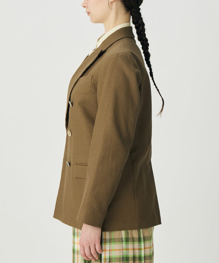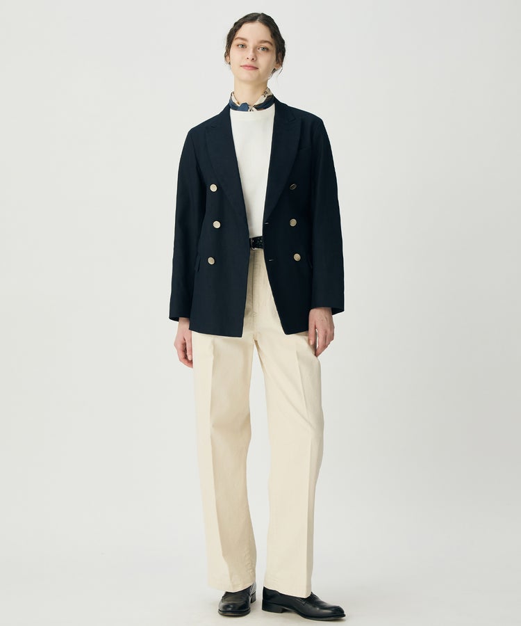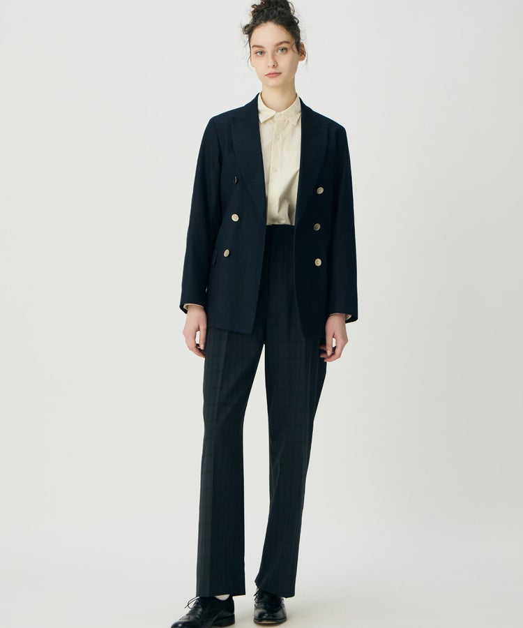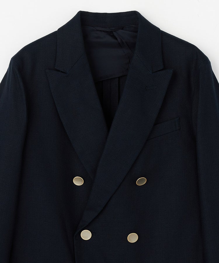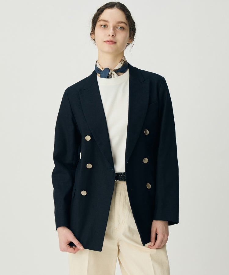 メタルボタンがもたらす程よいクラシカルさに、現代的なエッセンスを加えた一着です。シルエットはアップデートを施し、ダブルでありながらもすっきりとした印象に。肩や身幅のバランスを整えることで、羽織るだけで洗練された佇まいを演出します。