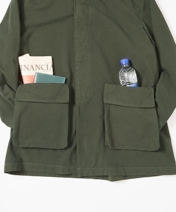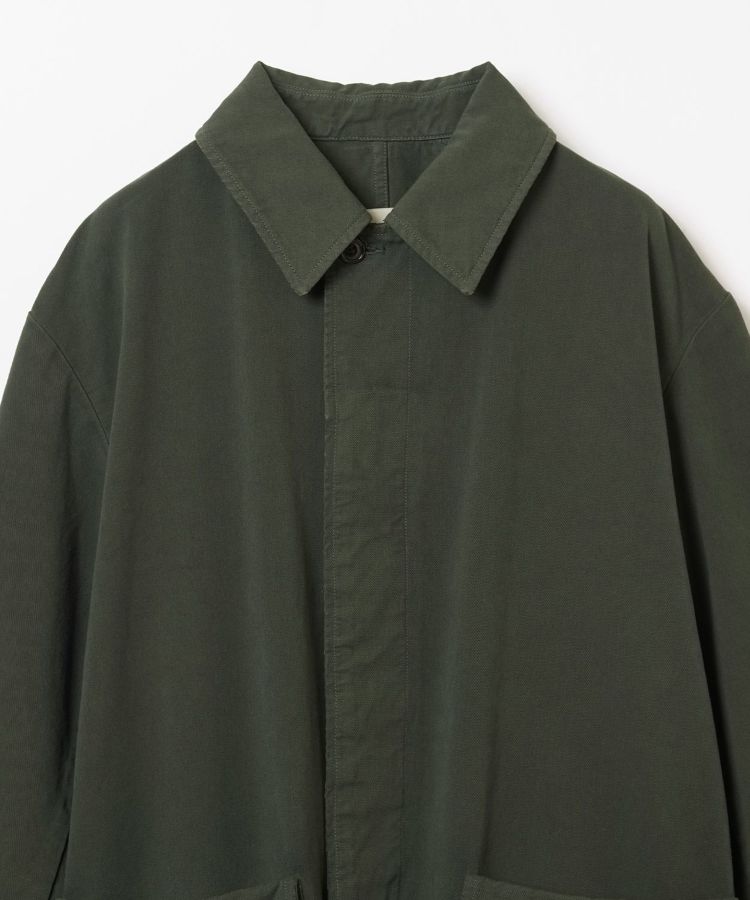 1960年代イギリスのマウンテンコートを現代的なアプローチでモディファイ。生地は60番双糸に追撚をかけて高密度で織り上げたドライタッチな生地を採用。さらに製品染めをかけることで、表面に独特なしっとりした微起毛感があり、ヴィンテージのような味わいある生地感に仕上がっています。