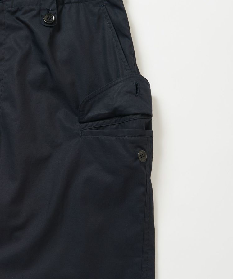 イギリスの定番的なコンバットトラウザーズをベースにデザイン。特徴的なポケットはイギリス軍の伝統的トラウザーズの形状を再現しています。サイドにウエスト調整可能なタブを配置しているため、薄手のTシャツからスウェットなどの厚みがあるインナーウェアまで、タックインして着用することが可能です。シティでもアウトドアでも活躍できるオールラウンダーショーツに仕上がっています。