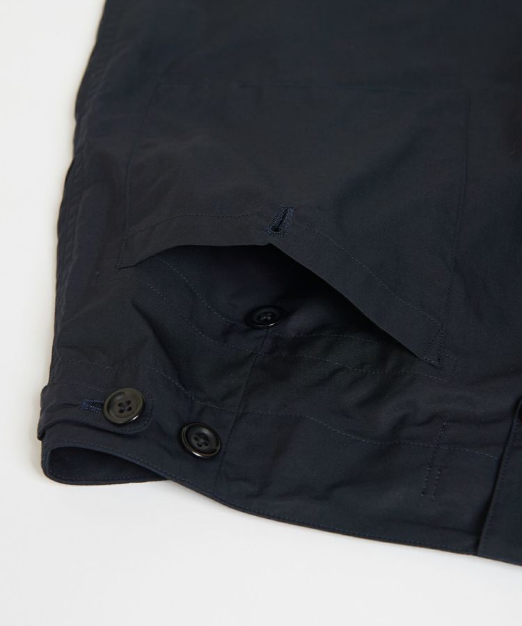 素材は繊維長の長い最上級コーマコットンを厳選し、高密度なギャバを製作。上質な原綿を使用しあえて難易度の高い60単糸を使用したことで、エイジングによりしなやかでくたっとしつつ、上品なしっとり感のある表情に変化していきます。見た目はハードなコンバットベースなデザインですが、着心地は柔らかくしなやかというギャップを楽しめるアイテムです。