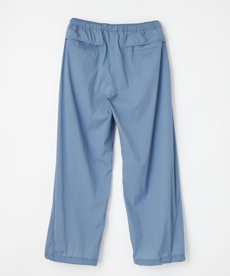 足首の後ろ部分から膝にかけてダーツを入れたことで、歩きやすいランブリング仕様のシルエットになっています。裾の内側に留め具付きドローコードを配置しているため、絞った後のコード余り部分が歩くときに邪魔にならない仕様です。