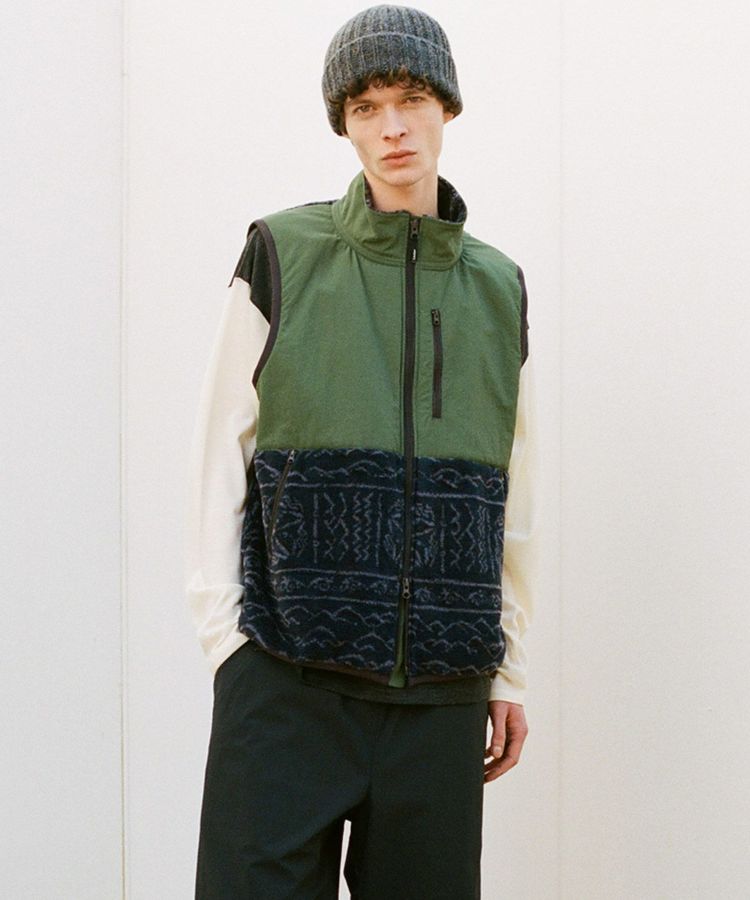 防風機能・UVカット機能を持つ素材を使ったシティユースでも活躍するフリースベスト。