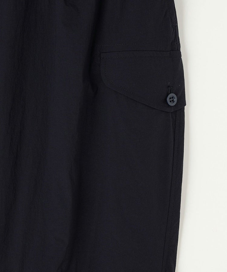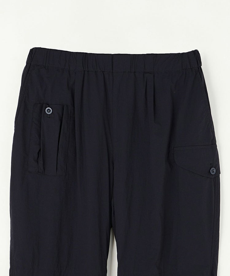 イギリスの定番的なコンバットトラウザーをベースにデザイン。ロングランブリングに適した作りにするため裾幅を太くし、歩きやすいようボリューム感を調整しています。ヒザ下には通気性も考慮したアクションプリーツを取り入れ、膝を曲げたりしゃがんだりしても生地が妨げにならない仕様です。ウエストをスポーツテイストのあるゴム仕様にし、さらに動きやすさがアップしています。素材感に合わせディテールを削ぎ落としたことで、よりロングランブリングに適したアイテムにアップデート。
