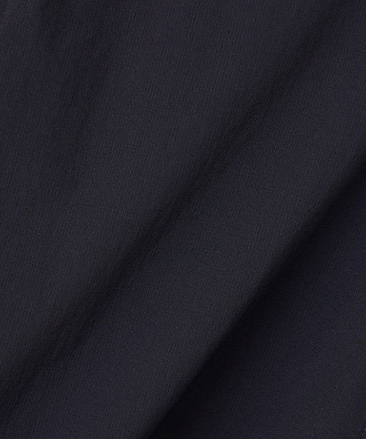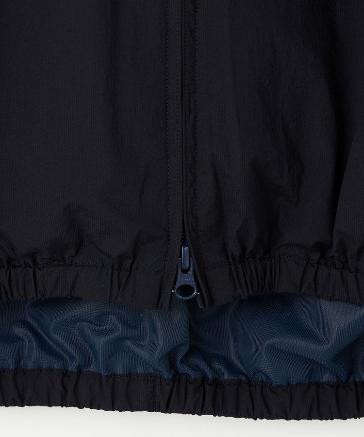生地は20デニールのナイロンを使用。ナイロンであるにも関わらず、ストレッチ性と強撥水性を持っており、また細番手のため軽量でイージーに着用できます。引き裂き強度も強いため、森や林などのランブリングにも使いやすい素材です。生地特性であるストレッチ性・撥水性とデザインがマッチしている着心地のよいアイテムに仕上がっています。