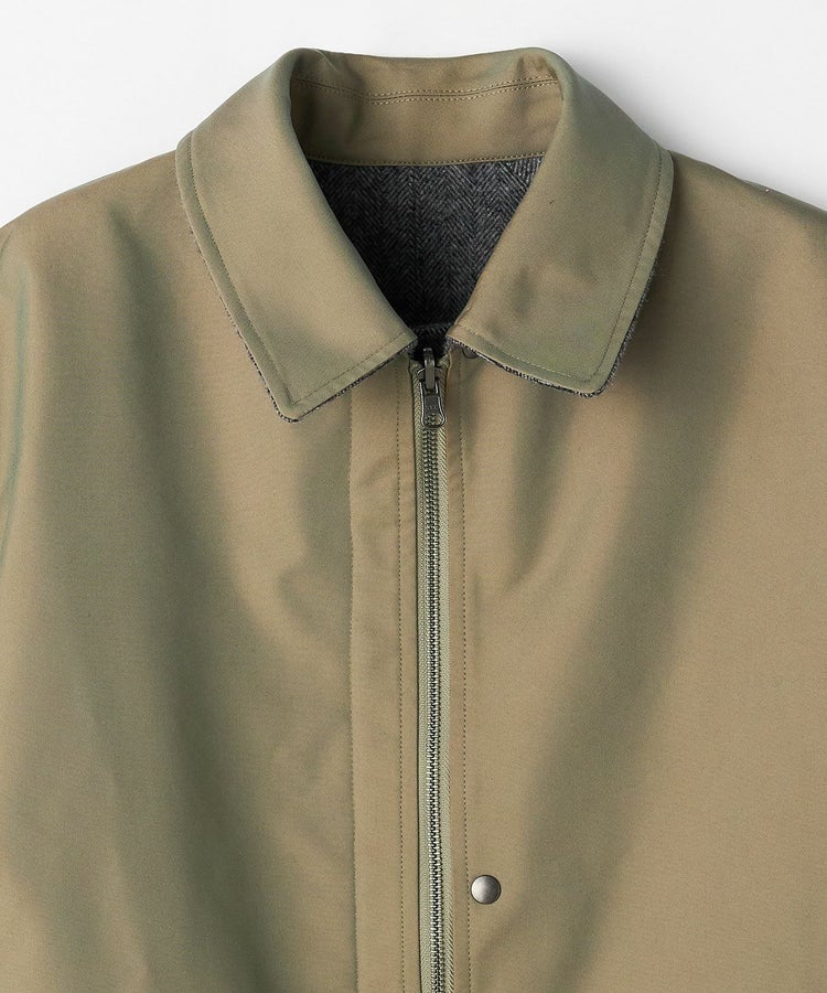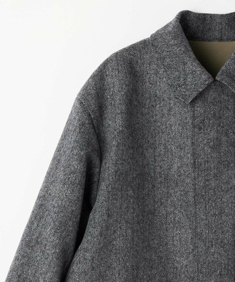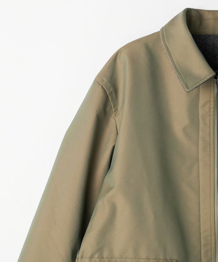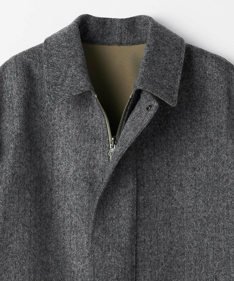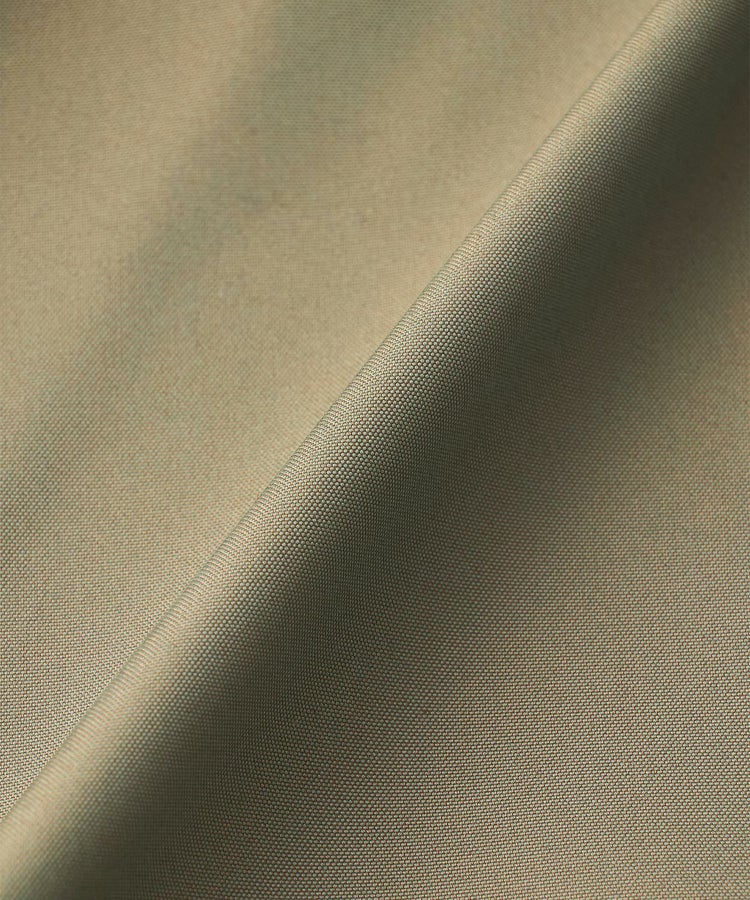 裏面には高密度に織り上げたコットンポリエステルのポプリン生地を採用。撥水加工と高い透湿性により、急な天候変化にも対応可能です。さらに、シワになりにくく摩擦に強い特性により、アクティブなランブリングシーンでも安心して着用できます。経年劣化も生じにくく、長く愛用していただけるアイテムに仕上がっています。表と裏で異なる特性を持つ生地を組み合わせることで、その日の天候やシーンに応じて使い分けられる万能なコートに仕上がっています。