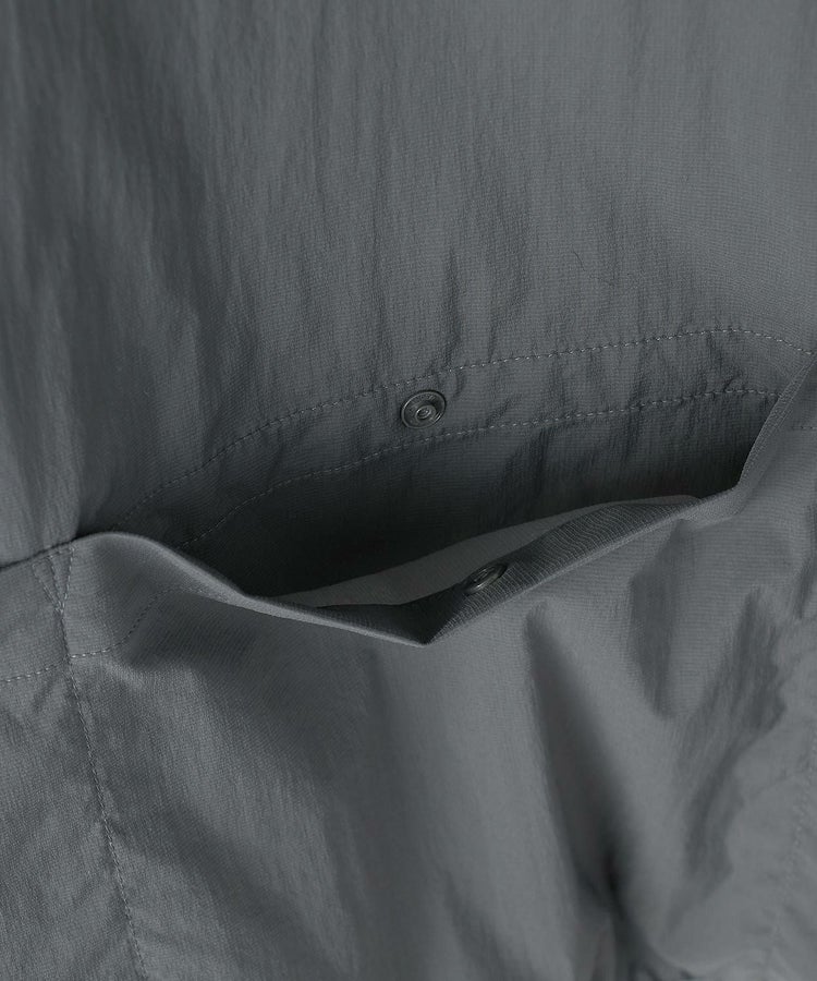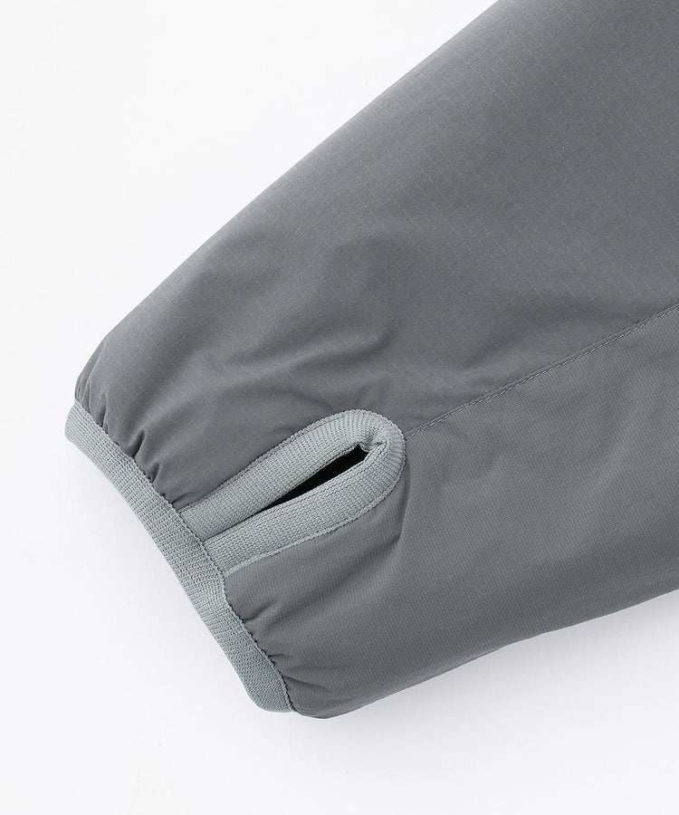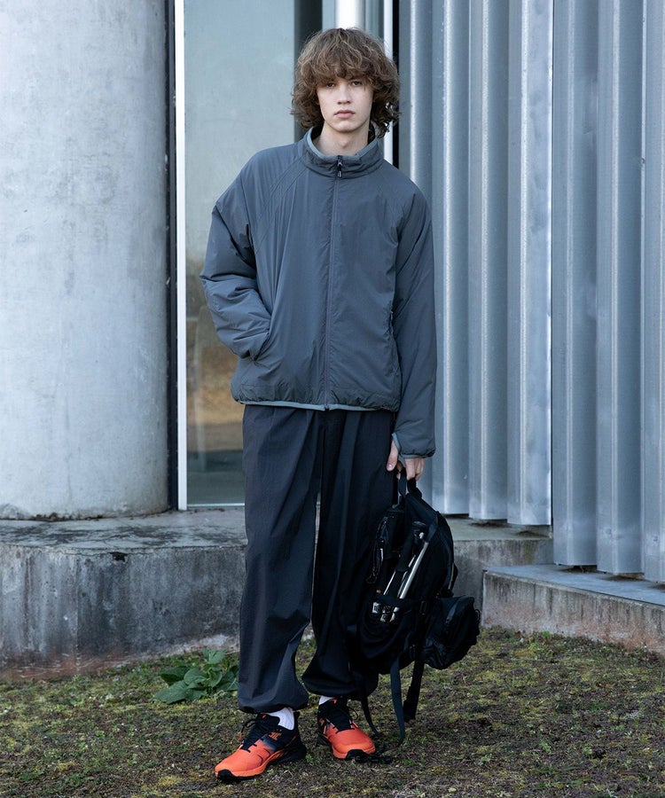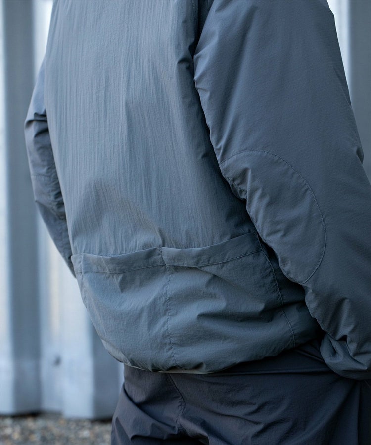 背面には3つの大容量ポケットを配置し、手ぶらでのランブリングを可能にしています。アームホールには独自のカッティングを採用することで、歩行時の腕の可動域を確保。袖口のサムループや効果的に配置されたパイピングによって、優れた保温性も実現しています。レイヤリングの自由度が高く、中にニットなどを着込めばアウターシェルとして着用でき、上からコートを羽織ればインナーとしても使用できるサイジングに設計。アウトドアでの実用性とシティユースでの洗練された表情を両立させた一着です。