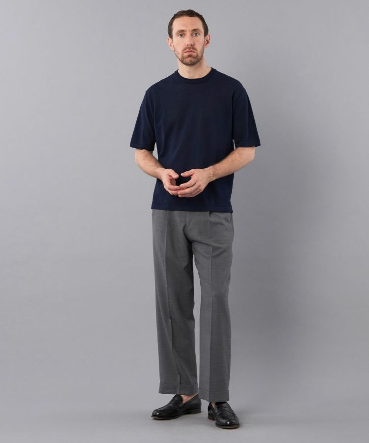 アッパーには、キメの細かい革質が自慢のカーフ素材を採用し、比較的ドレスにも合わせやすい仕上がり。U字型ステッチにあしらわれた、モカシン縫いの凹凸によって立ち上がっている革の高さが、ブランドならではのしなやかさを漂わせます。ヴァンプの長さ、甲革に載ったサドルの幅、これらの数値の相関関係によってもローファーの顔立ちは変わってきますが、あくまでもローファーの定番たる表情を貫きつつ、ほんのりと柔らかいエレガンスを漂わせています。