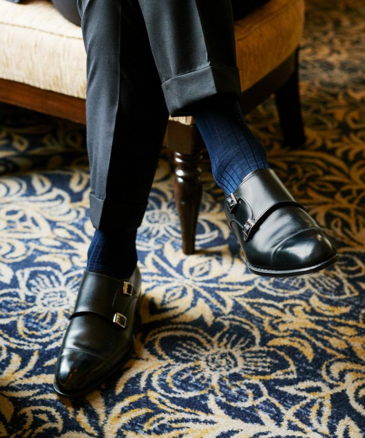 ブラックカーフを使用した、スーツからカジュルなスタイルにまで様々なスタイルに合わせることができるダブルモンクシューズ。