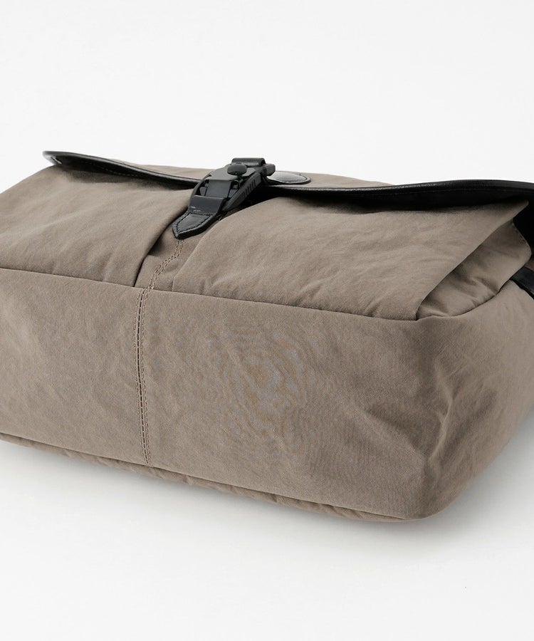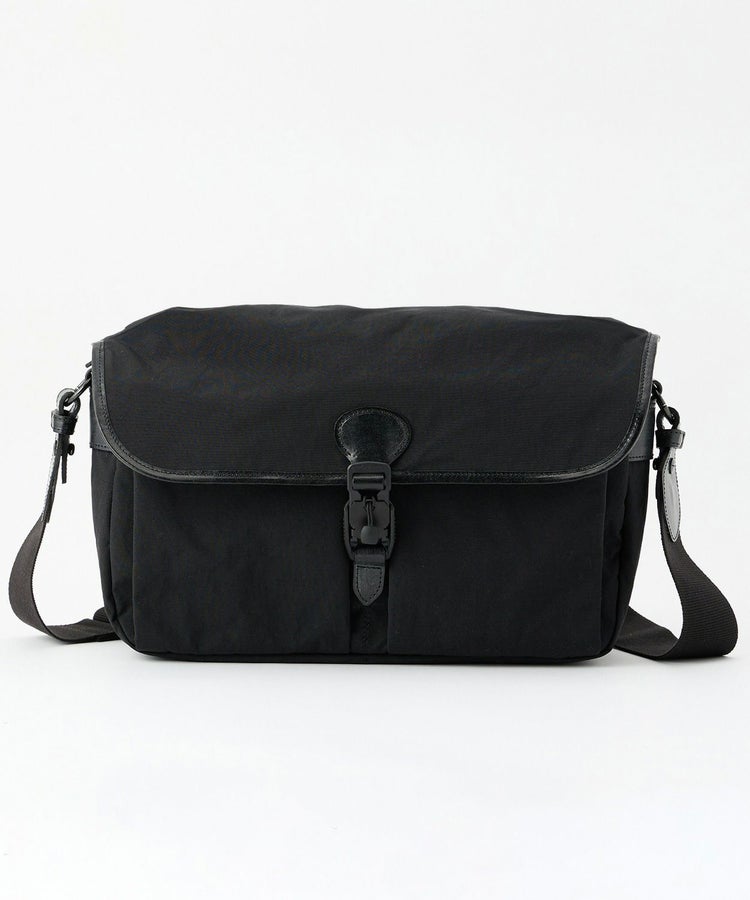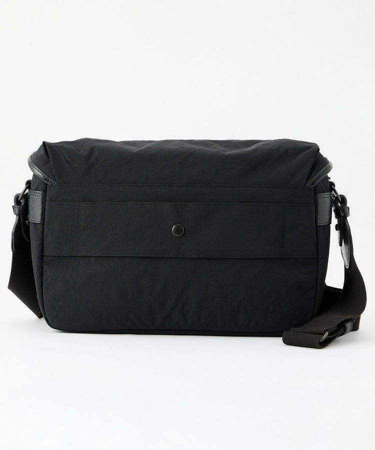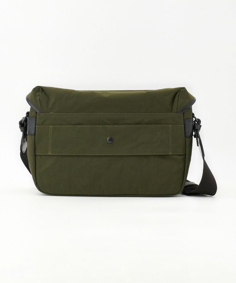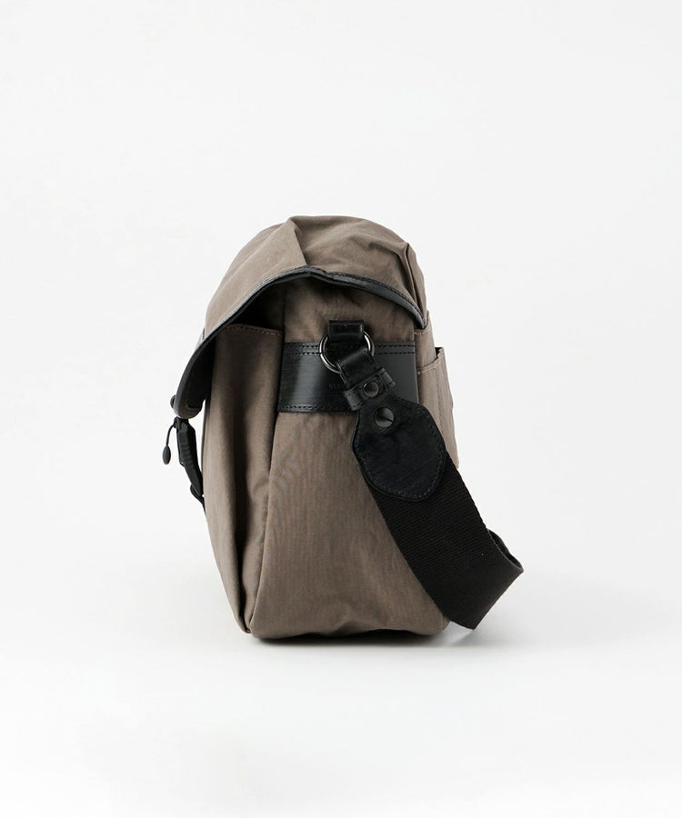 塩縮加工を施した生地密度が高いナイロンを採用したことで、強度がありながらも軽い使い心地のショルダーバッグです。タスラン加工糸を使用しコットンライクな仕上がりですが、撥水性を備えているところもポイント。フラップ裏には細々したものをわけて収納できるファスナーポケットがあり、普段使いにもぴったりです。
