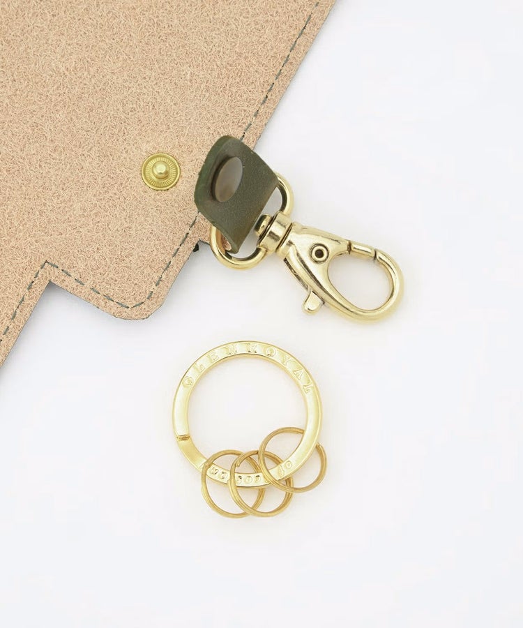 フラップの形はアーカイブから取り入れたクラシカルなデザインです。ロゴ入りのフラットキーリングとスプリングリングは取り外し可能で、お好みでカスタマイズできます。スマートキーと他の鍵をまとめることができ、鞄の中での管理を手助けするアイテムです。