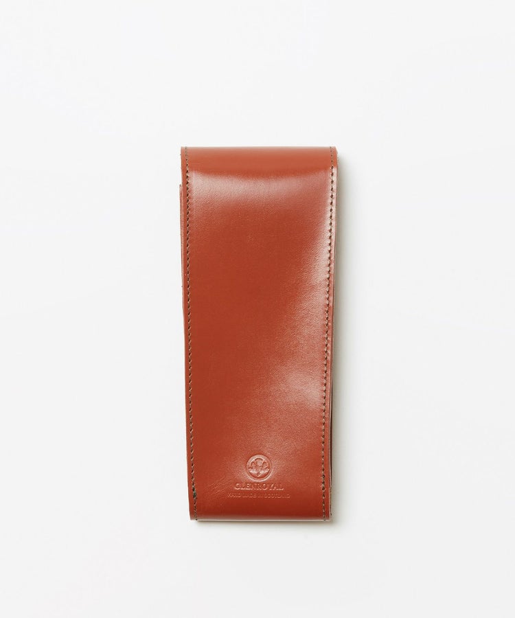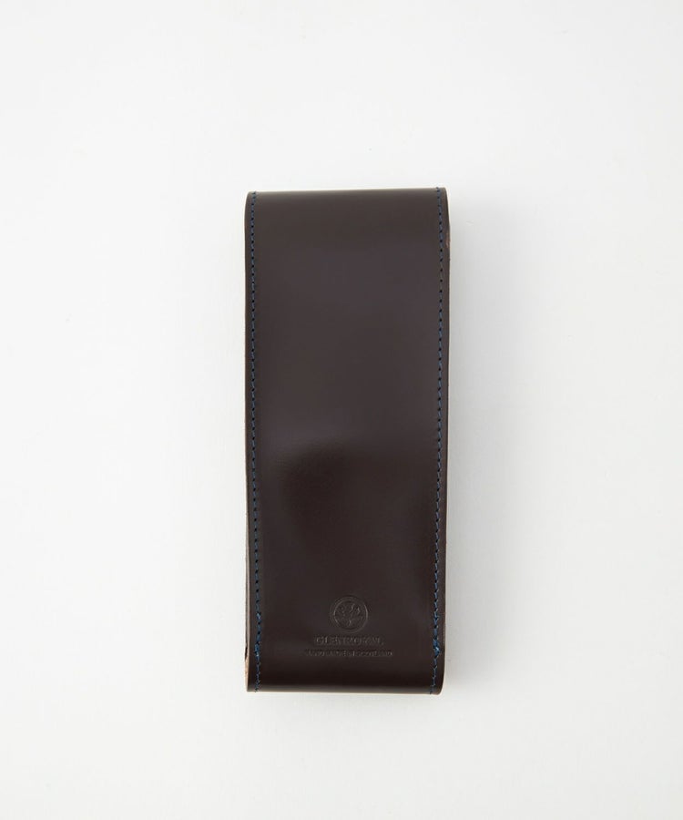 金具を使用せずフラップを差し込んで止めるシンプルな仕様。飽きの来ないデザインでなつかしさを感じさせる大人の為のステーショナリーです。何気ないビジネスシーンでも佇まいを美しく感じさせてくれるアイテムは、自分らしいこだわりで長く愛用していただけます。必要最低限のペン類が収まるコンパクトなサイズ感ながらも、2.5cmのマチがありメガネをすっきりと持ち歩けます。