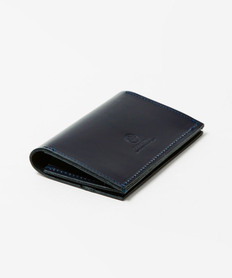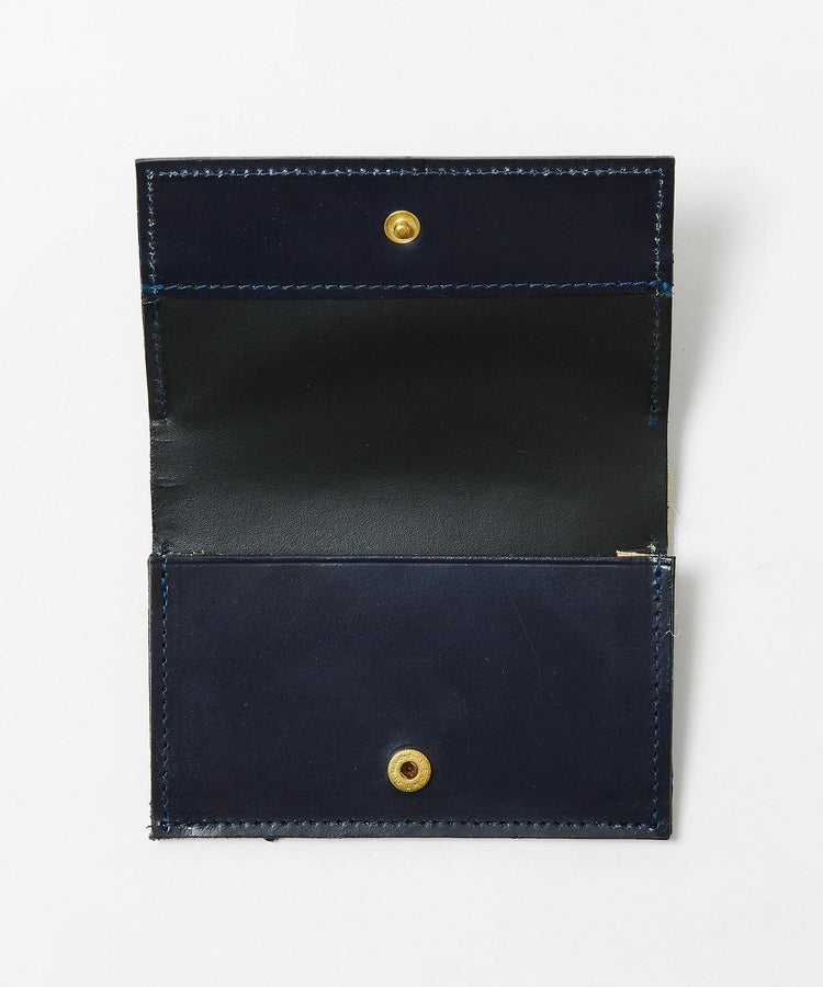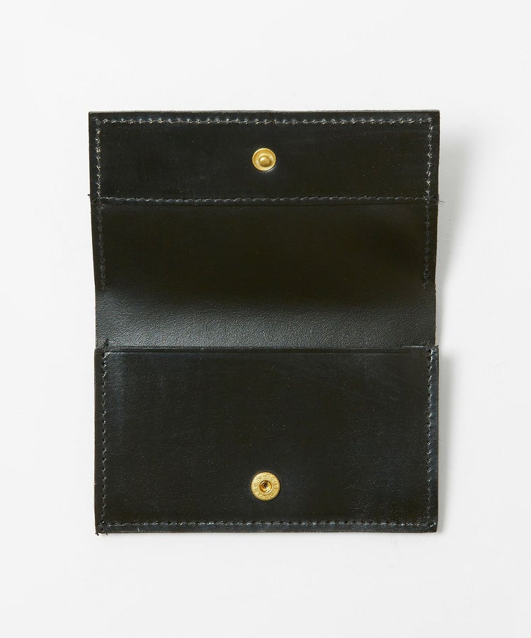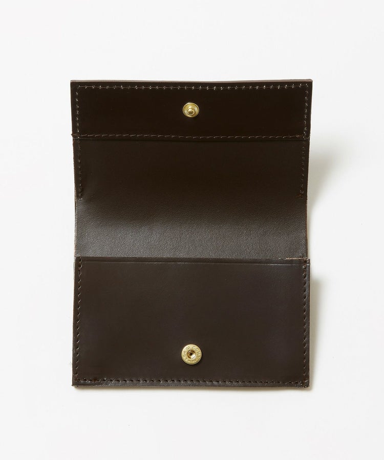 ジャケットのポケットに収まる薄型でありながら、名刺であれば約10枚程度収納が可能。スナップボタンが表から見えないので、ブライドルレザー特有の経年変化を存分に楽しめるデザイン。使い込んでいくことで、光沢感が徐々に増していきます。ビジネスマンとしての経験値とともに、風格漂う佇まいへと変化してくれる一品です。