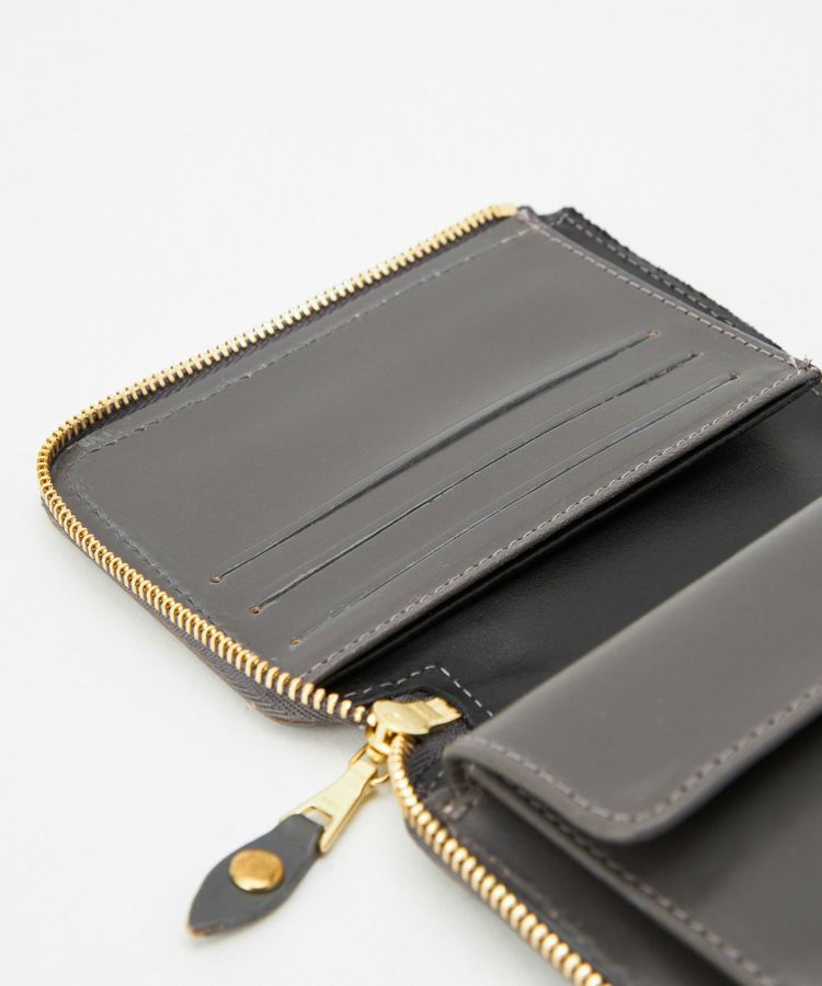 手のひらに収まるサイズ感ながら充実した収納力を兼ね備える、L字型ファスナータイプの2つ折り財布。