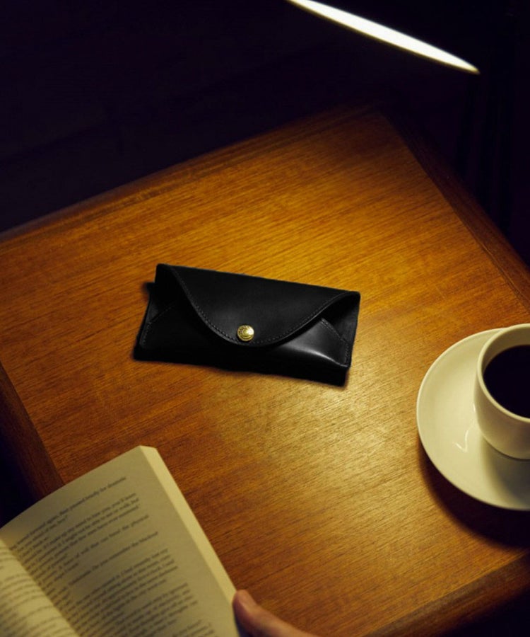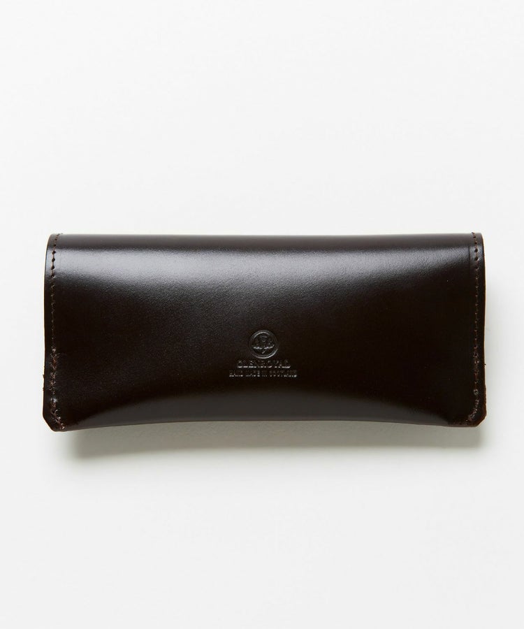 レンズの大きいサングラスも入る仕様ながら、見た目は非常にスマートで持ち運びしやすく、バッグの中でかさばりません。カラー展開も豊富なので、メガネやサングラスのデザインに合わせて揃えるのもおすすめ。ブライドルレザー特有の経年変化(エイジング)を楽しみながら長くご愛用いただけます。