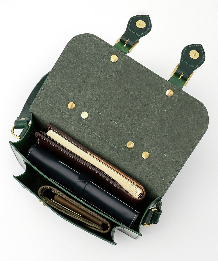 B6サイズを綺麗に収めることができるコンパクトなサイズ感で、イギリスでは古くから学生カバンとして親しまれています。利便性とトラディショナルなルックスから、近年ではファッションアイテムとしても地位を確立。グレンロイヤルのサッチェルバッグは、素材にブライドルレザーを使うことでより耐久性も上がり、品格も添えながら、デイリーに長く愛用できる仕様です。マグネットで簡単に開閉できるフラップや長さ調節可能なショルダーストラップなど、シンプルなデザインながら大人でも積極的に使いたくなるような実用的なディテールが随所に散りばめられています。