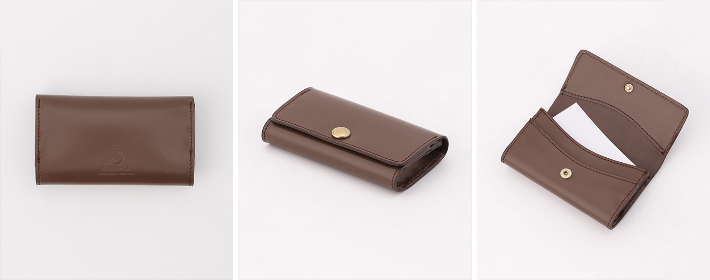 GLENROYALと刻まれた、ゴールドのスナップボタンがアクセントに。ラギッドになりがちなレザープロダクトに優美な印象をプラスしてくれます。また、しっかりとホールドできるので、名刺が落ちる心配もなく安心して使用することができます。