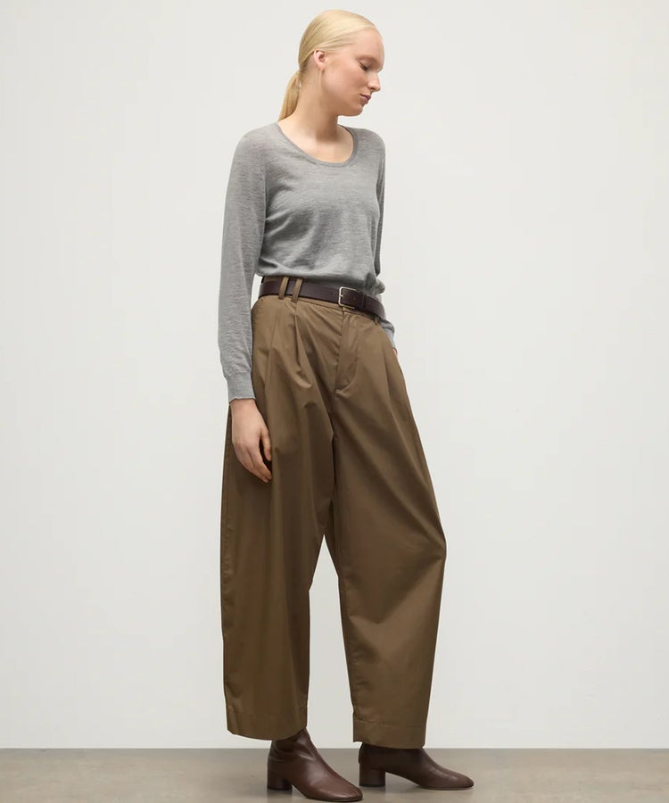 優美なスクープネックとゆったりとしたシルエットが魅力のクラシックなカシミヤニット。