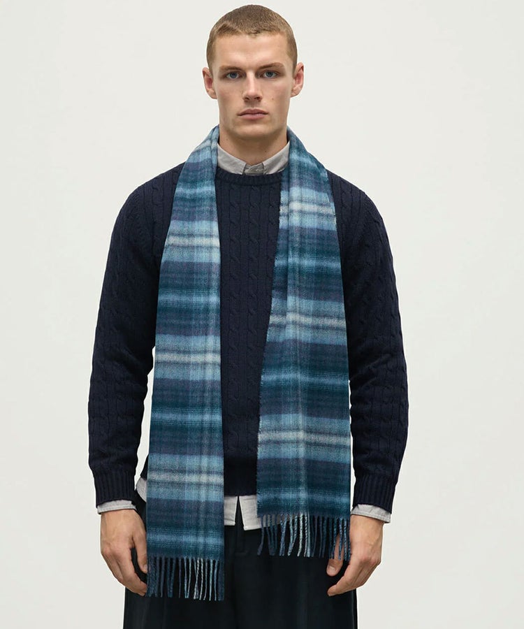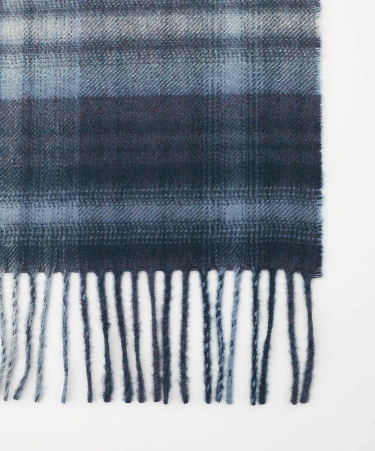コーディネートのワンポイントとしても活用できるチェック柄のマフラー。