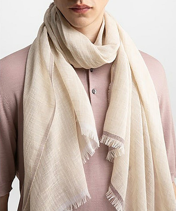 コットンとウールをブレンドした生地を使用し、薄手でしなやかな大判スカーフ。