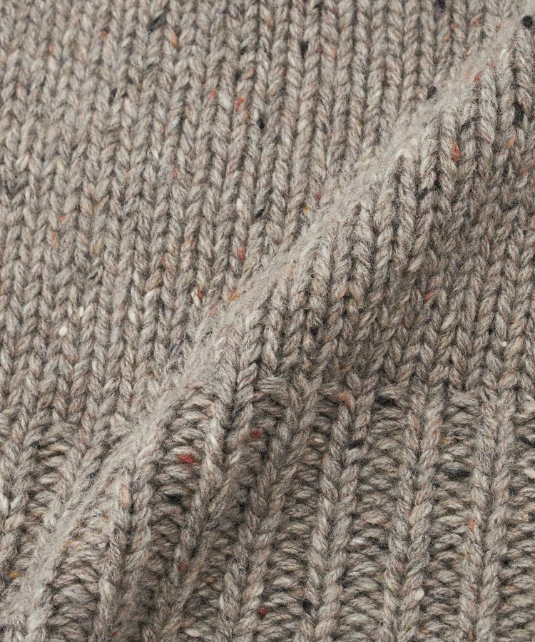 アイルランド北西部で紡がれるドネガルヤーンは、多色のネップが散りばめられた独特の斑点模様が特徴です。スコットランドの職人が100%ピュアカシミアで編み上げることで、柔らかさと豊かな表情を兼ね備えたニットに仕上がります。糸の不規則さが一枚ごとの個性を生み、唯一無二の魅力を放ちます。