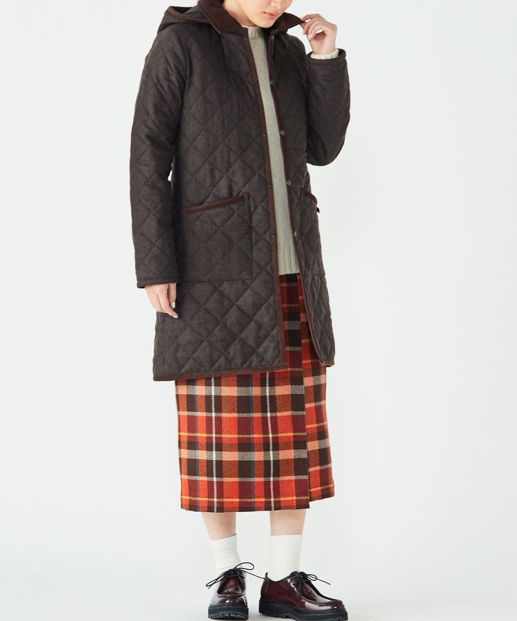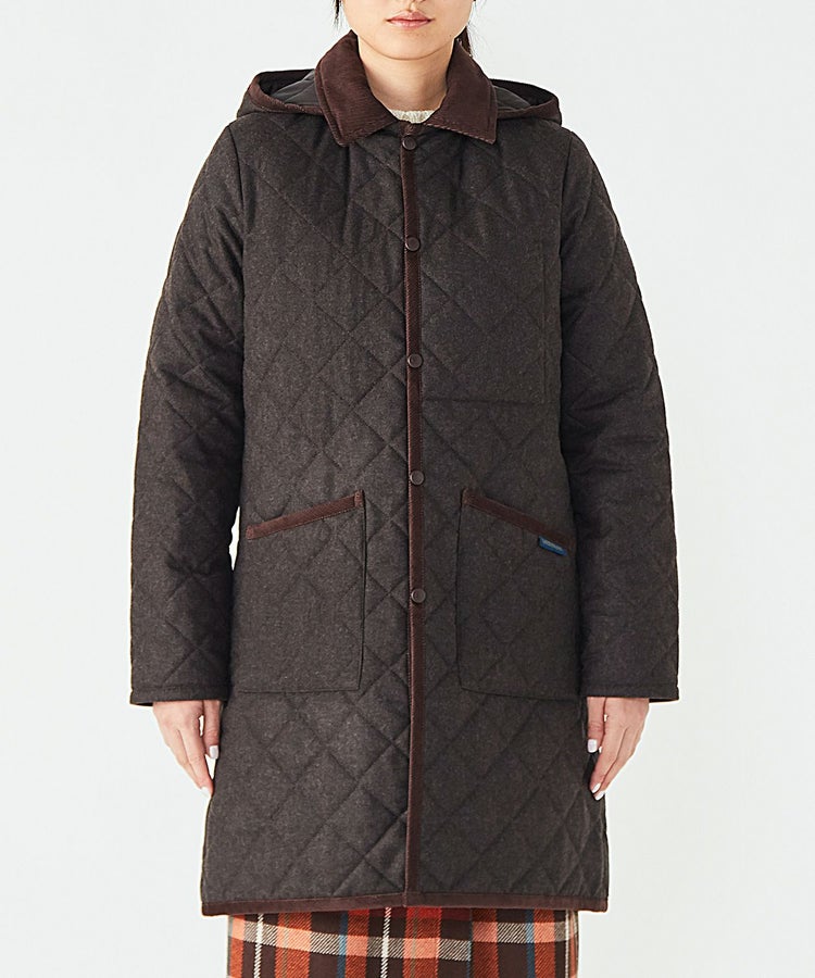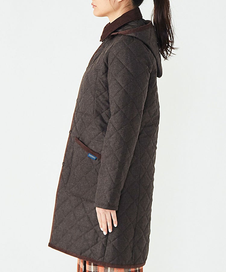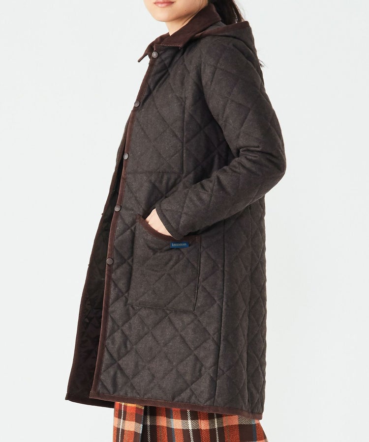 ラベンハムらしいパッチポケットやコーデュロイの襟が特徴。ゆったりシルエットのため、やや厚手のインナーを重ねることもできます。また、ミドルコートタイプなので暖かさはもちろん、ヒップの気になる女性にも安心の着丈です。