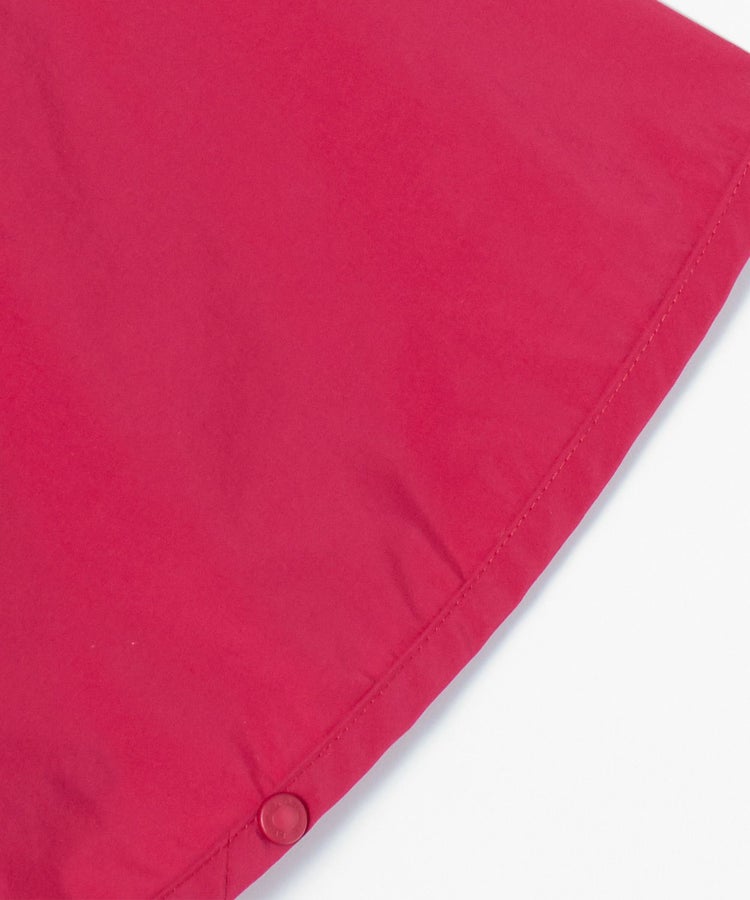 すっぽり覆うポンチョ型なら、スナップボタンで着脱がしやすく、元気に動きまわる子どもにぴったりのアイテムです。袖口にスナップボタンが付いているので、腕と体をしっかり分けられる設計。強い風でもめくれあがる心配はありません。