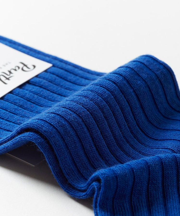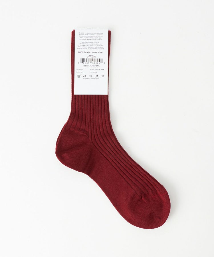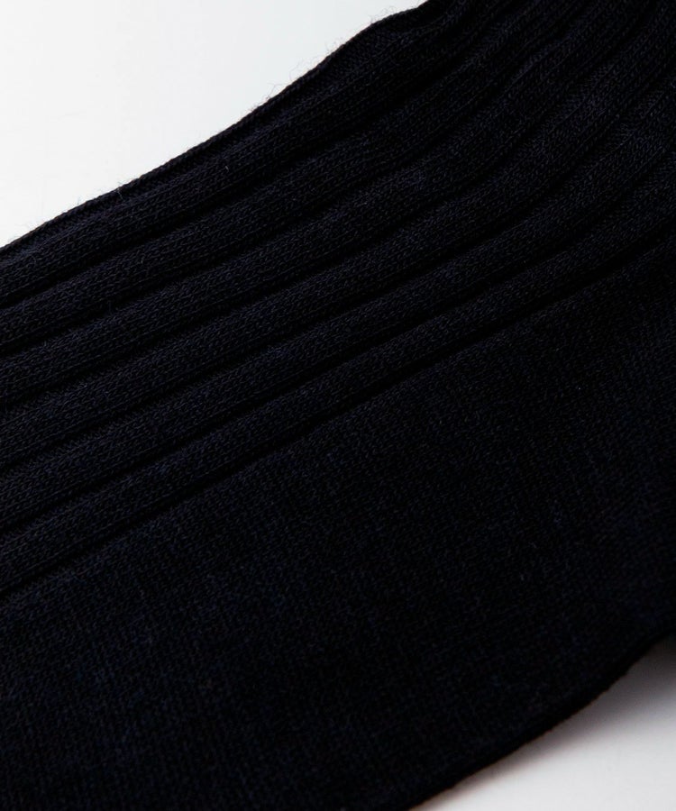 メリノウール混紡で伸縮性があり履き心地が良い無地のリブソックス。