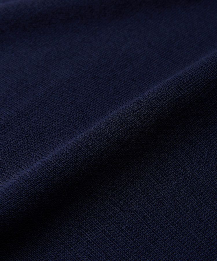 毛羽立ちの少ないコンパクト綿を使用したコットンアセテートを採用。手洗い可能なイージーケア素材で吸湿・速乾、ピリング性に優れており、天然繊維の質感と合成繊維の機能性を両方兼ね備えた素材です。綿はインド長綿の最高級品でOEKOTEX社(エコテックス®)から環境に配慮した栽培の認定を受けています。