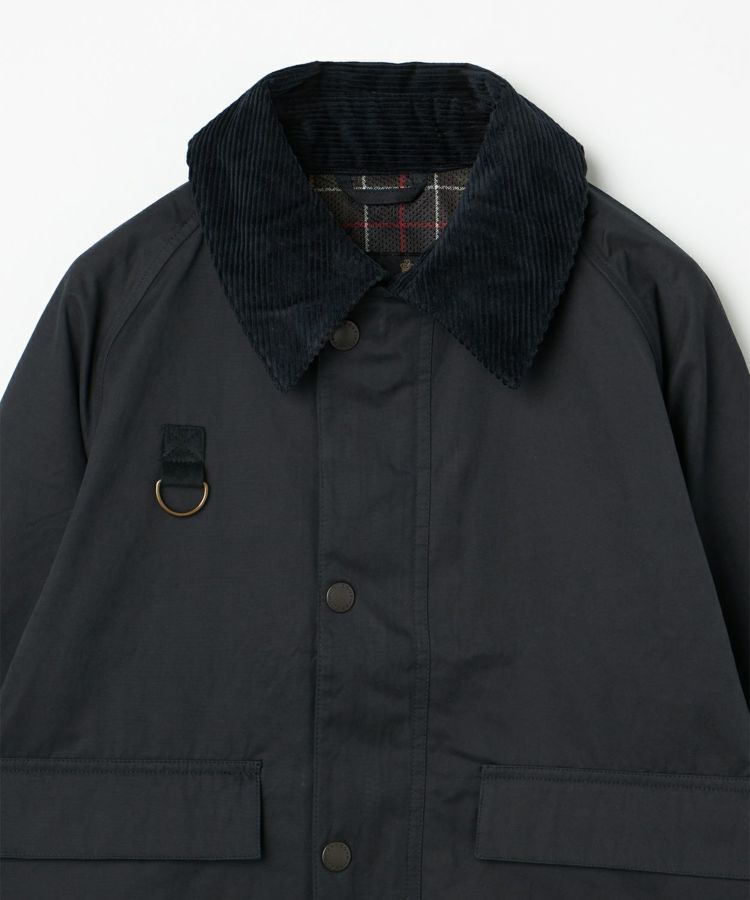 その特徴的なシルエットは、下半身まで川に浸かるフライフィッシングで着用するため考案されました。フィッシング用のアーカイブモデルが持つ高い機能性とクラシックなディティールを残しつつ、タウンユース向けにアップデートしたモデルです。脇下にさりげなく配置された3つの小さなベンチレーションが適度に熱を逃がしてくれるため、厚着をしても蒸れにくいつくりです。右胸にはフライフィッシング時に小物類を吊るすDカンを備え、その名残を感じさせます。生地にはポリエステル、コットン、ナイロンを混合させた、ワックスドコットンの風合いを感じさせる起毛素材を採用。桃の表面のような微起毛が特徴的で、しなやかな手触りと高級感を放つ素材感が魅力。裏地はタータンチェックのメッシュ素材で、背中の上部のみにあしらった半裏仕立て。春先から秋口までロングスパンで活躍するアイテムです。